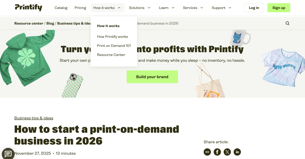 An important thing to note about print on demand is that you don’t hold any inventory. A third-party service connects your artwork to blank products, handles printing, shipping, and customer service, and you earn a profit from each sale. Your focus stays on ideas and marketing rather than fulfillment.